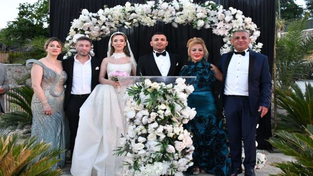 Nikah şahitliklerini Şehmuz Karadeniz, Ayhan Taşkıran, Mustafa Tombuç ve Nurettin Öztürk yaparken nikah memurunun “Evet” sorusuna yüksek sesle yanıt veren çift, konuklardan büyük alkış alırken çifttin düğününe Saruhan Hünel, Alper Sürücü, Didem Taslan, Cerem Onurluer, Pelin Suade, Reyhan Altıparmak, Faruk Tuncer ve eşi dahil olmak üzere, cemiyet, iş, sanat, spor ve siyaset dünyasından birçok ünlü isim katıldılar.