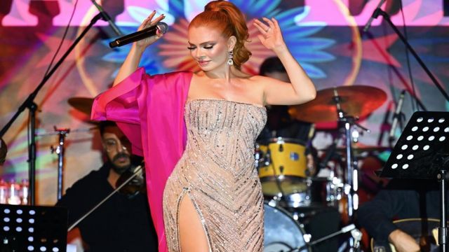 Sahneye Gülşah Saraçoğlu imzalı swarovski taşlı ve derin yırtmaçlı elbisesi ile çıkan sanatçı sesi, yorumu, muhteşem repertuvarı ve asil görünüşü ile izleyenleri kendisine bir kez daha hayran bıraktı.