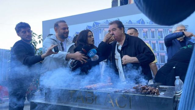 İbrahim Tatlıses, tablanın üzerinde kurulan mangalda kebapları kendi elleriyle pişirerek konuklara ikram etti. Tatlıses’in elinden kebap yeme ayrıcalığını yaşayanlar arasında Yıldız Tilbe de vardı. Tatlıses’le yıllar süren küslüğünü geçtiğimiz yıl sonlandıran Tilbe, lezzetin tadını çıkarırken Tatlıses’e esprili yorumlarla da takıldı.