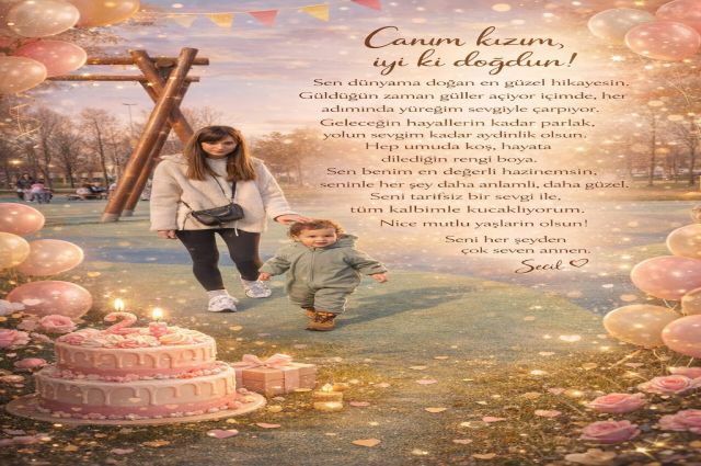 Canım kızım… Hayat her zaman kolay olmayacak, bunu biliyorum. Önüne zorluklar çıkacak, bazen yorulacaksın, bazen kırılacaksın… ama şunu hiçbir zaman unutma: Sen, her karanlığın içinden kendi ışığınla çıkabilecek kadar güçlü bir kızsın. Çünkü sen sevgiden geldin… sabırla büyüdün… ve kalbin hep iyilikle dolu kaldı. Bu seni her zaman ayakta tutacak en büyük gücün olacak.